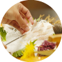 若旦那が魚の種類、状態を見極めて、鮮度の良いまま熟成したり昆布で〆る事で、魚がもつ本来の旨味や美味しさを最大限に引き出したお造りを味わっていただけます。